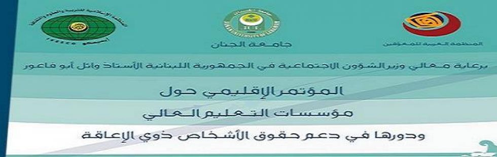 برعاية معالي وزير الشؤون الإجتماعية في الجمهورية اللبنانية الأستاذ وائل أبو فاعور، تم بحمد الله عقد المؤتمر الإقليمي حول مؤسسات التعليم العالي ودورها في دعم حقوق الأشخاص ذوي الإعاقة من 20 إلى 22 نيسان 2012 في جامعة الجنان، طرابلس لبنان، بالتعاون مع المنظمة الإسلامية للتربية والعلوم والثقافة (الإيسيسكو). وبالتنسيق مع المنظمة العربية للاشخاص ذوي الاعاقة، وبمشاركة باحثين وخبراء وأشخاص ذوي إعاقة من دول عربية وأجنبية مختلفة : مصر، الأردن، سوريا، العراق، الجزائر، السودان، البحرين، فلسطين، ليبيا، قطر، السعودية، لبنان، المغرب، الإمارت العربية المتحدة، فرنسا وسويسرا.