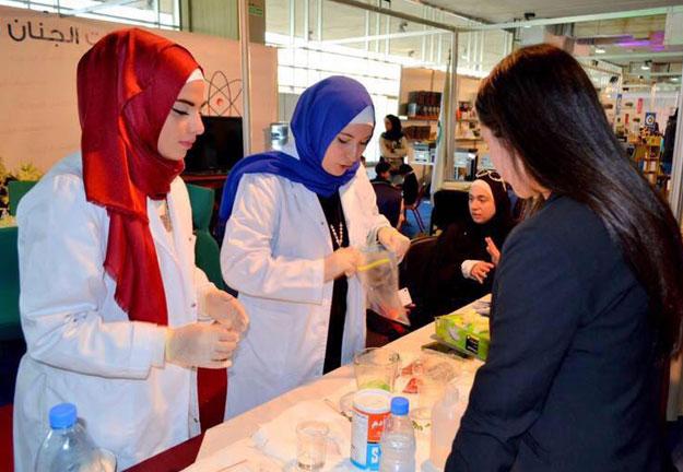 نظم طلاب كلية العلوم في جامعة الجنان نشاطا في جناح الجامعة ضمن فعاليات معرض الكتاب 43 الذي تنظمه الرابطة الثقافية في معرض رشيد كرامي الدولي .وقدم الطلاب تجارب كيميائية ـ تفاعلية بالإضافة إلى استخراج مادة ال DNA من الفاكهة .وشرحت الطالبة فاطمة رحال من كلية الصحة التجربة الكيميائية الأولى التي كانت عبارة عن اكسدة الايثانول بالبرمنجنات البنفسجي فيتحول اللون الى احمر حتى يختفي تماما ثم يضاف مؤشر اللون وهيدروكسيد الصوديوم ليعطي اللون الزهري.