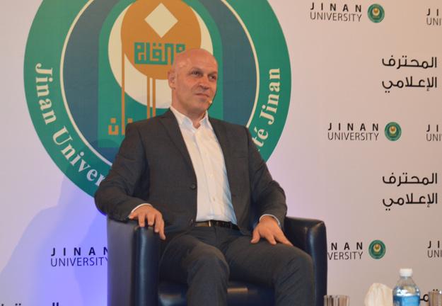 وكان في استقبال الضيف رئيس الجامعة الاستاذ الدكتور بسام بركة ومديرها العام الأستاذ الدكتور بسام حجازي وعميد كلية الاعلام الأستاذ الدكتور رامز الطنبور واستاذ مادة المحترف الاعلامي الدكتور زكريا بيتية والمسؤول الرياضي الأستاذ عبد الحميد يكن.