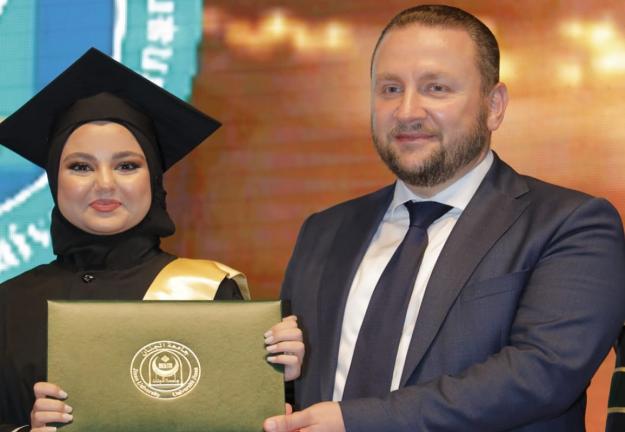 هذا وتخلّل الحفل تقديم الدكتور "يكن" درعاً تقديريّاً لمعالي الوزير "الأبيض"، وتقديم الشهادات إلى الخريجيّن، إضافة إلى منح شهادات المهارات الحياتيّة لمجموعة من الخريجين من مختلف الكليّات.