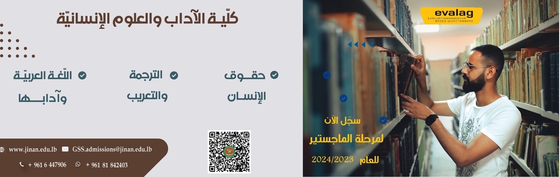 إنّ جامعة الجنان وقد آلت على نفسها العمل في مجالات اللغة العربيّة وآدابها، تدعو الطلاب إلى مواكبة هذا الحراك اللغويّ والأدبيّ الجامعيّ، على مستويي الماستر والدكتوراة، إسهامًا في خدمة صاحبة الجلالة، اللغة العربيّة، التي تعبّر اليوم عن ملايين الناطقين بها، والمعبّرين عنها في فنون الشعر والنثر؛ ترجمة، ورواية، وسردًا، وسيرًا ذاتيّة وغيريّة في محتلف الأمصار لإغناء السجل العربيّ بالإنجازات التي تثبّت حضور العاملين باللغة العربيّة على خارطة العالم اللغويّ والأدبيّ.