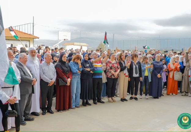 كما وتخلّل الوقفة قصيدة شعرية ألقاها الطالب "شادي طريفة" وأناشيد من وحي المناسبة قدمها الطالب "علي حرّوق".