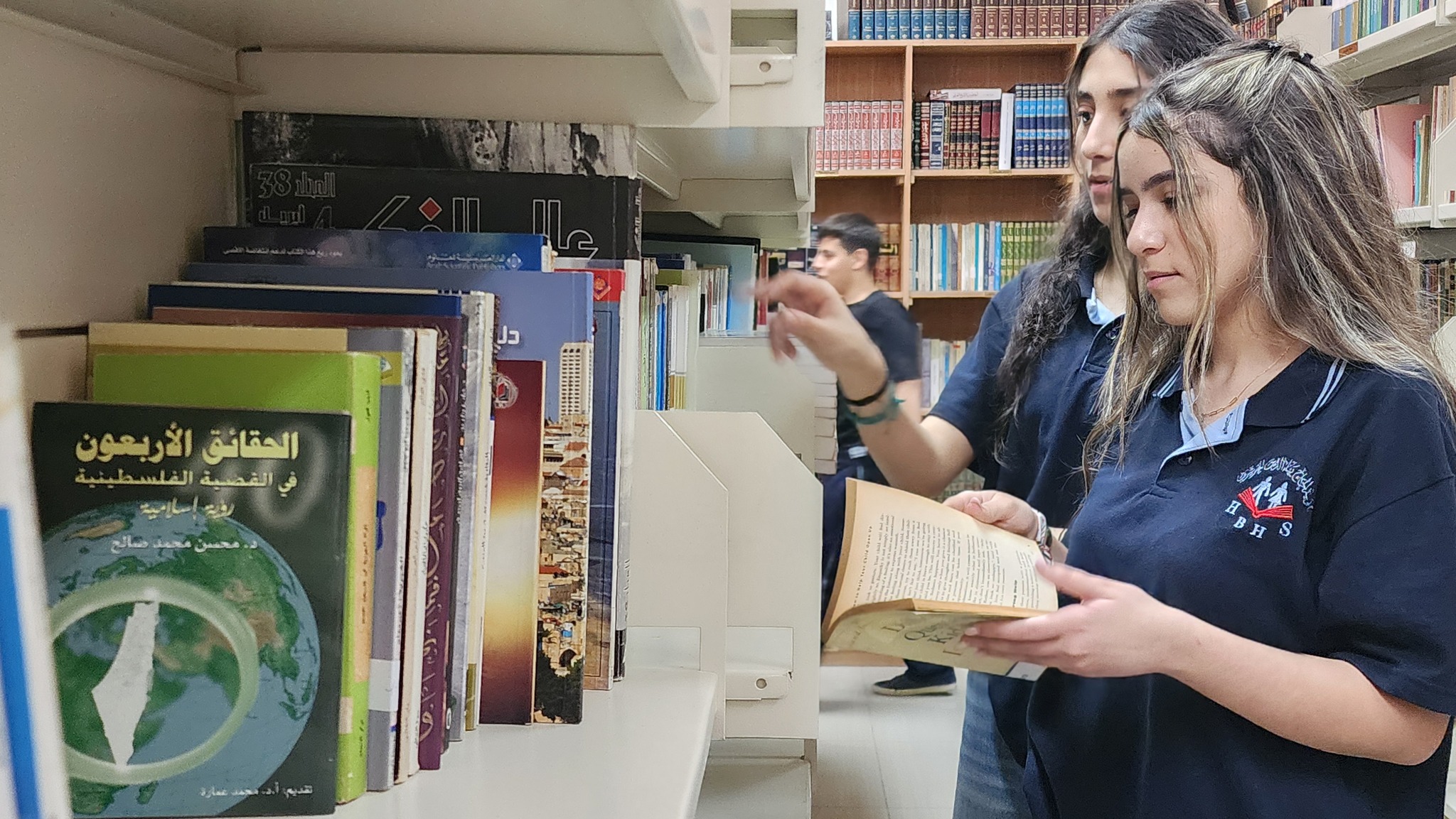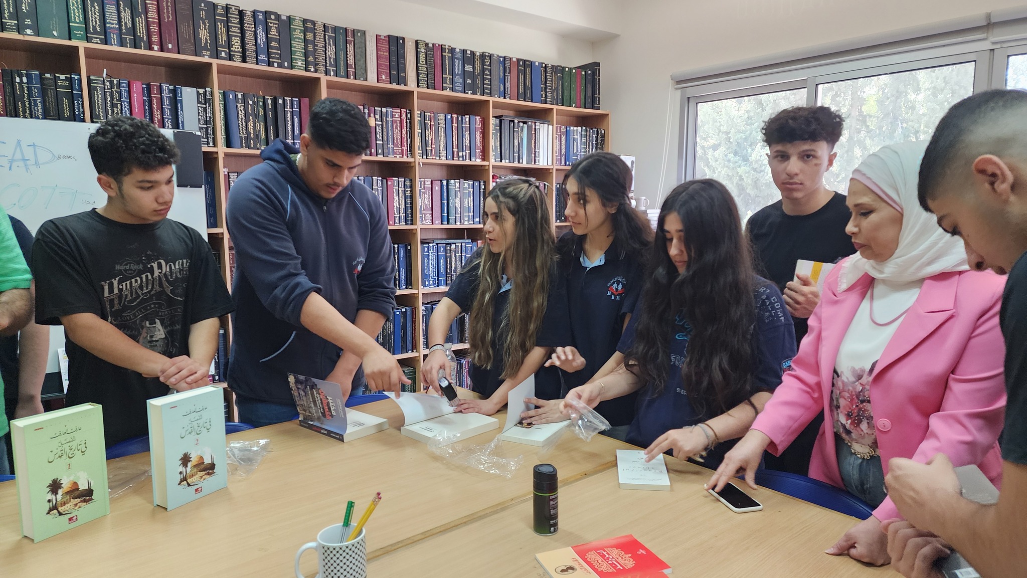 طلّاب بهاء الدين الحريريّ يُقدّمون كتباً لمكتبة الجنان – صيدا
