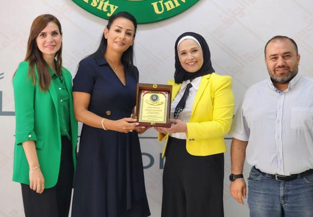 وفي ختام اللقاء، قدّمت الأستاذة أبو زيد باسم الجامعة درعًا تقديريًّا للسيّدة لما الطويل، تكريمًا لدورها الرياديّ في الدفاع عن العدالة التربويّة وحقوق المتعلّمين، وتقديرًا لجهودها في دعم البيئة التعليميّة ورفع الصوت باسم الأهالي والطلاب في المحافل التربويّة.
