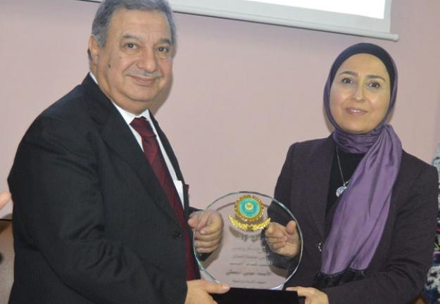 في الختام قدّمت نائب الرئيس الدكتورة عائشة يكن درع شكر وتقدير للنقيب الأستاذ عوني الكعكي وباقة ورد لمناسبة ذكرى ميلاده .