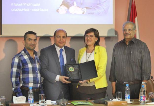 وفي الختام قدّمت عميدة كلية الاعلام وأعضاء مجلس الكلية درعاً تقديرياً للإعلامي منير الحافي ثم أخذت الصور التذكارية.