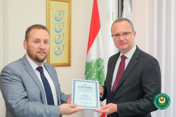وفي الختام قدم د. "يكن" لسعادة السفير درعاً تذكاريّة عربون وفاء وتقدير كما تم تبادل الهدايا بين الطرفين.