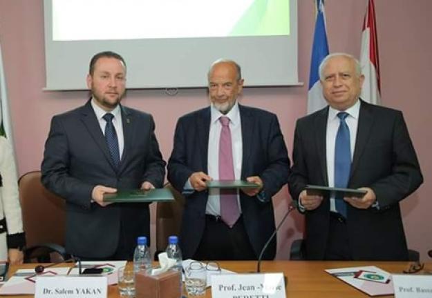 A signing ceremony of a cooperation agreement was held between Jinan University represented by the Chairman of the Board of Trustees at the University, Dr. Salem Yakan, and the presence of the University President, Prof. Bassam Baraka, the General Director, Prof. Bassam Hijazi, President Najeeb Mikati represented by Mr. Nabil Soufi, President of the Bar Association of Tripoli Mr. Mohammad Mourad represented by Ms. Samia Bahri, Dr. Imad kasaa the Representative of the Agence Universitaire de la Francophonie, Dean of the Faculty of Science at Jinan University Dr. Joumana Younis, the administrative and academic bodies at Jinan University along with the Academy of Management Sciences in Paris (ASMP) represented by its President of the Doctoral School, Professor Jean-Marie Peretti, for the establishment of a joint program of a Doctorate in Business Administration (DBA).